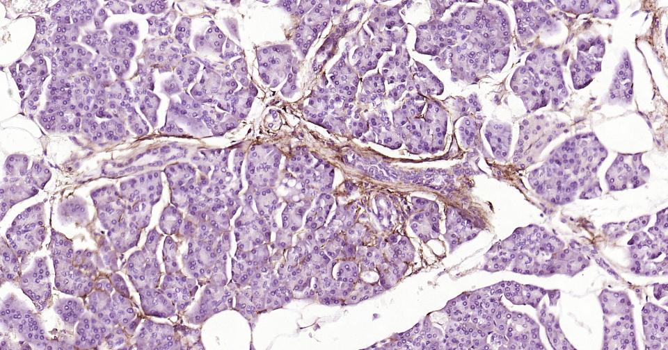 Paraformaldehyde-fixed, paraffin embedded Human Pancreas; Antigen retrieval by boiling in sodium citrate buffer (pH6.0) for 15 min; Antibody incubation with NGFR/p75NTR Monoclonal Antibody, Unconjugated(bsm-52253R) at 1:200 overnight at 4°C, followed by conjugation to the bs-0295G-HRP and DAB (C-0010) staining.