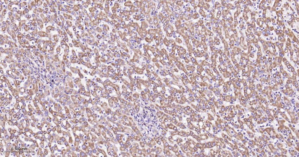 Immunohistochemical analysis of paraffin embedded Human liver tissue slide using IHC0508 (GCLM Kit).
