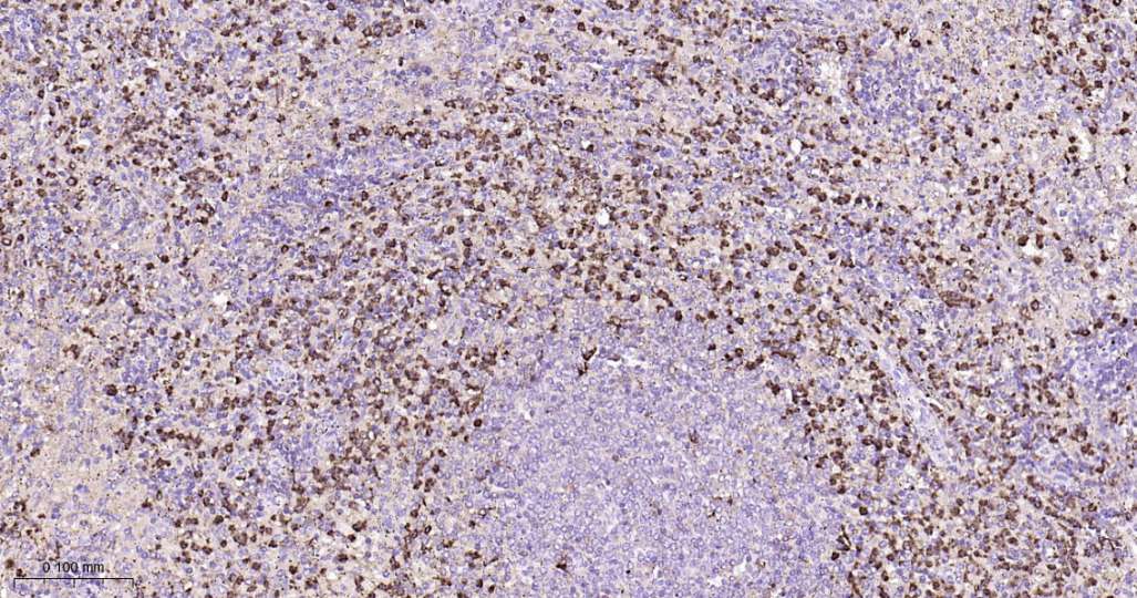 Immunohistochemical analysis of paraffin embedded Mouse spleen tissue slide using IHC0518 (Lysozyme Kit).