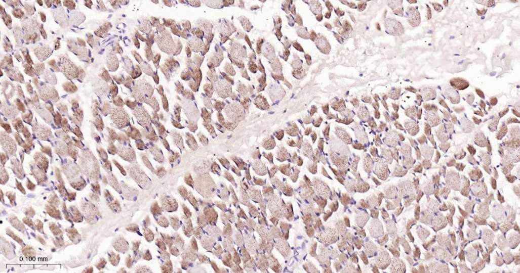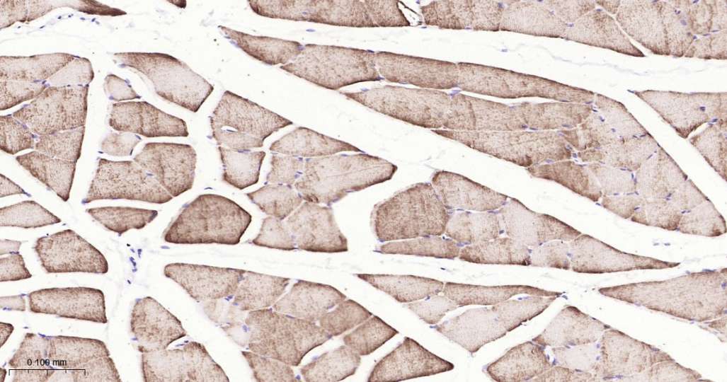 Immunohistochemical analysis of paraffin embedded Mouse skeletal muscle tissue slide using IHC0536 (PLIN2 Kit).