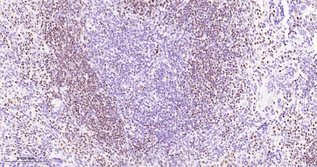 Immunohistochemical analysis of paraffin embedded Mouse spleen tissue slide using IHC0540 (OCT2 Kit).