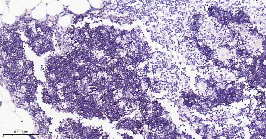 Terminal Deoxynucleotidyl Transferase (TdT) is a DNA polymerase located in the cell nucleus which catalyses the polymerization of deoxynucleotides at the 3' hydroxyl ends of oligo or polydeoxynucleotide initiators and functions without a template. TdT is considered to be a highly specific marker for the diagnosis and classification of acute lymphoblastic lymphoma/leuksemias. The determination of TdT expression is most valuable when it is different to differentiate histologically between lymphoblastic lymphoma and Burkitt's lymphoma. SWISS: P04053 Gene ID: 1791 |