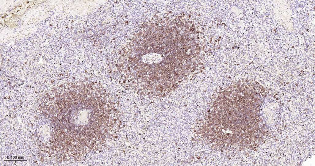 Immunohistochemical analysis of paraffin embedded Human spleen tissue slide using IHC0556H (Human CD22 Kit).