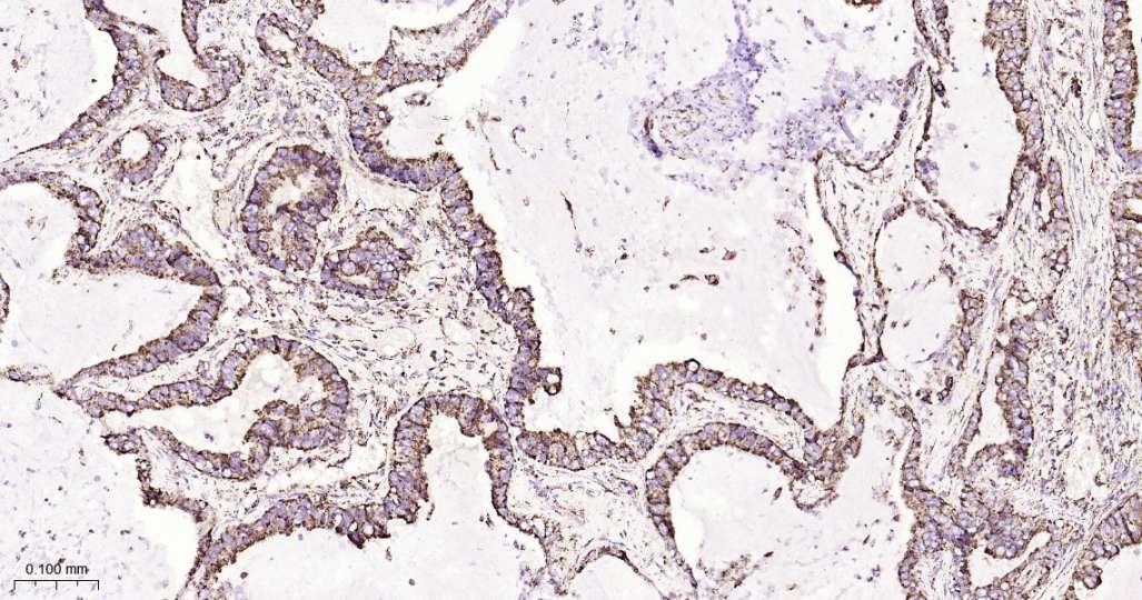 Immunohistochemical analysis of paraffin embedded Human colon cancer tissue slide using IHC0559H (Human Hsp10 Kit).