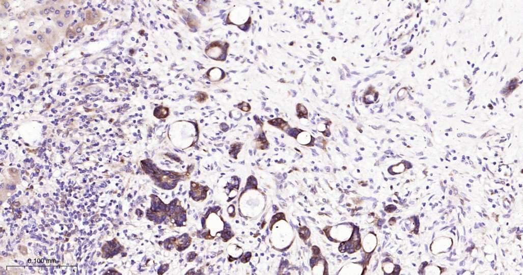 Immunohistochemical analysis of paraffin embedded Human hepatocellular carcinoma tissue slide using IHC0578H (Human NME1/NM23A Kit).