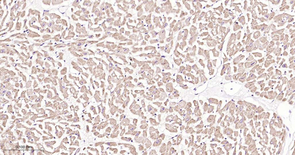 Immunohistochemical analysis of paraffin embedded Human heart tissue slide using IHC0587 (GCS beta 1 Kit).