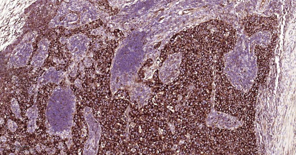 Immunohistochemical analysis of paraffin embedded Human breast cancer tissue slide using IHC0592H (Human Phospho-EIF2S1(Ser51) Kit).