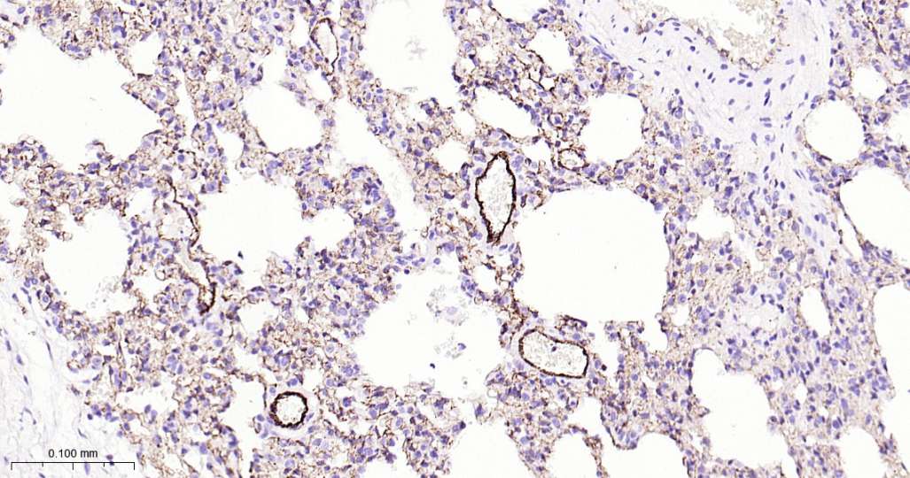 Immunohistochemical analysis of paraffin embedded Mouse liver tissue slide using IHC0599 (CD31 Kit).
