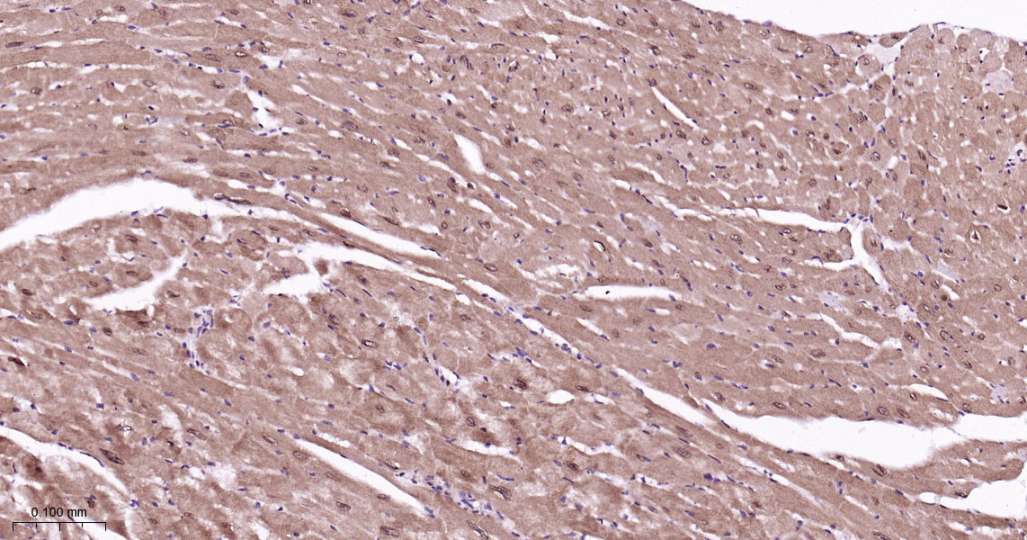 Immunohistochemical analysis of paraffin embedded Mouse heart tissue slide using IHC0602 (PSMD14 Kit).