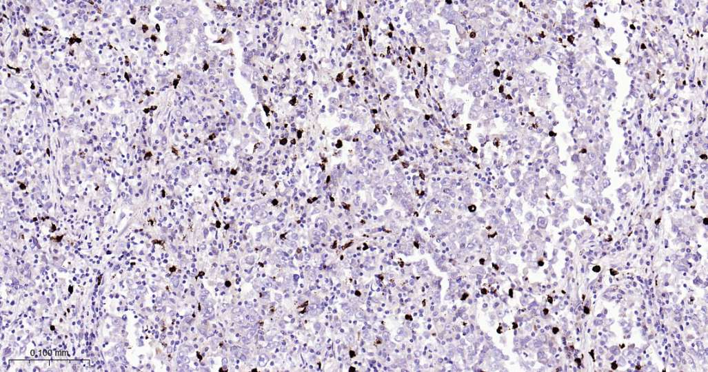 Immunohistochemical analysis of paraffin embedded Human spleen tissue slide using IHC0610H (Human MPO Kit).