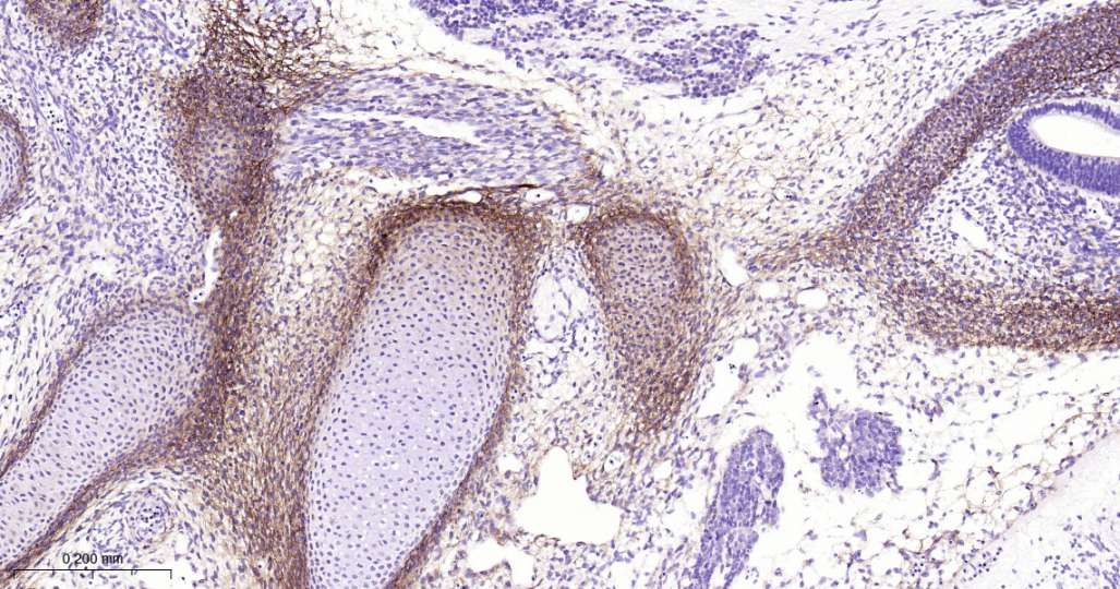 Immunohistochemical analysis of paraffin embedded Mouse embryo tissue slide using IHC0618 (TGFBI Kit).