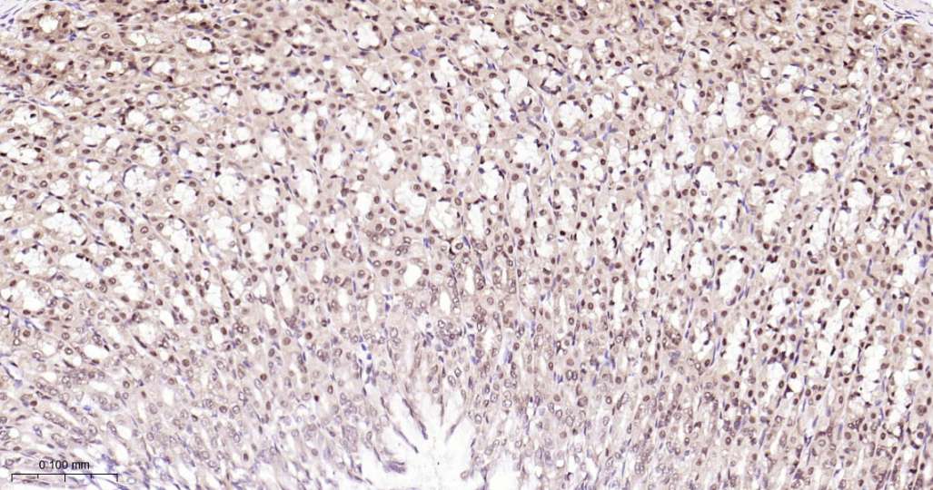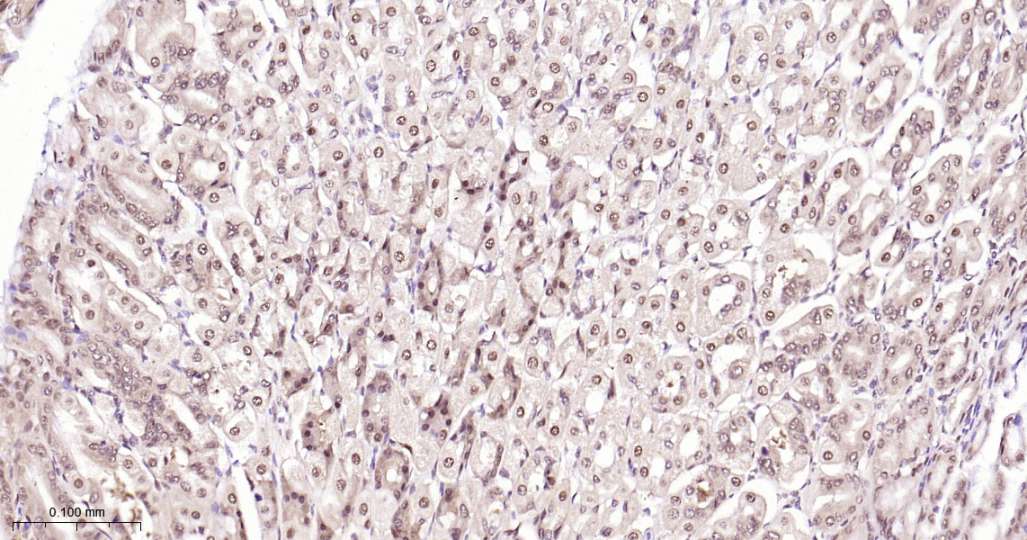Immunohistochemical analysis of paraffin embedded Mouse stomach tissue slide using IHC0662 (RBX1 Kit).