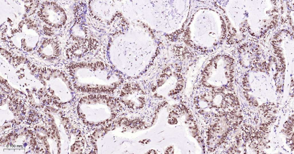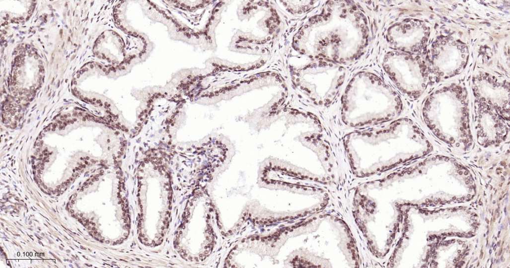Immunohistochemical analysis of paraffin embedded Human prostate tissue slide using IHC0662H (Human RBX1 Kit).