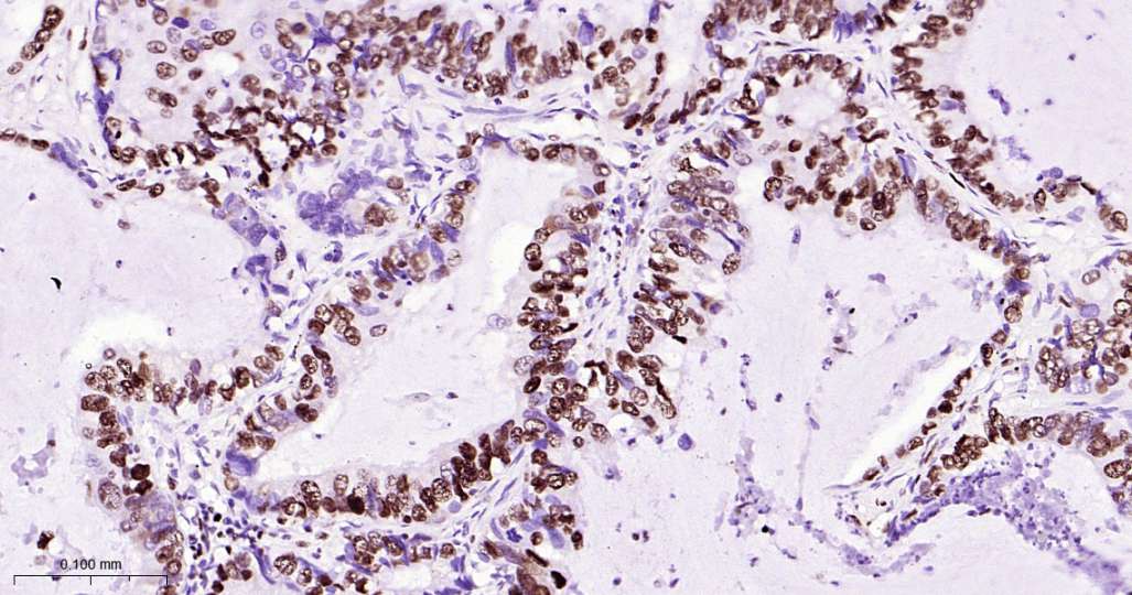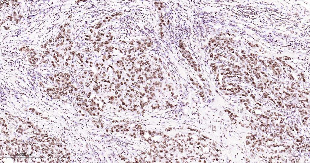 Immunohistochemical analysis of paraffin embedded Human breast cancer tissue slide using IHC0665H (Human Nucleolin Kit).