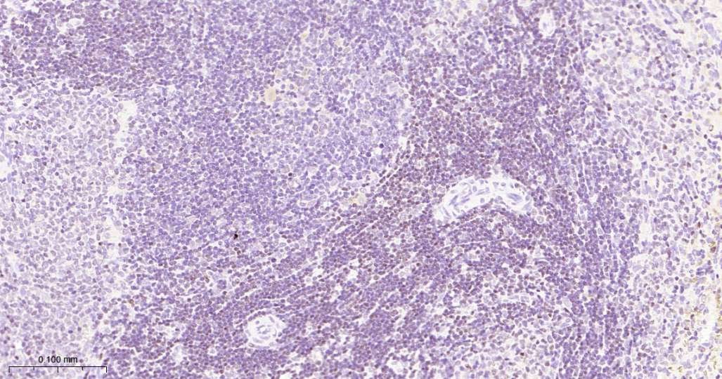 Immunohistochemical analysis of paraffin embedded Human tonsil tissue slide using IHC0668 (RUNX1/RUNX2/RUNX3 Kit).