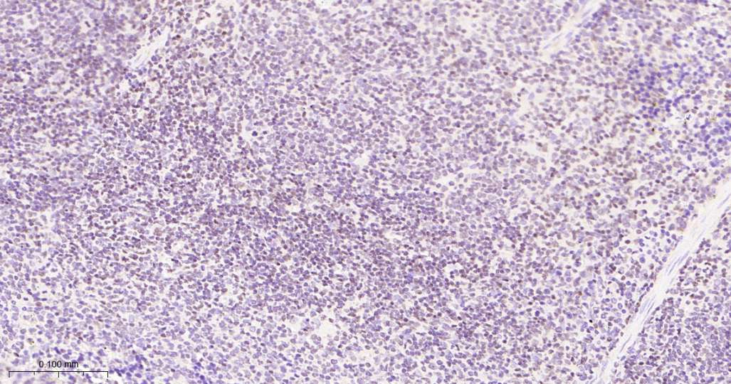 Immunohistochemical analysis of paraffin embedded Mouse spleen tissue slide using IHC0668 (RUNX1/RUNX2/RUNX3 Kit).