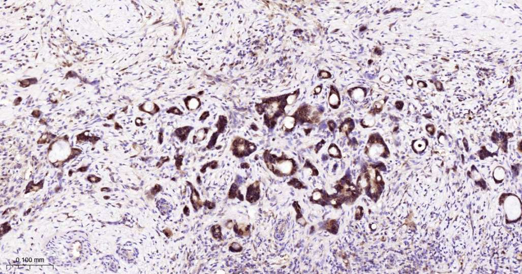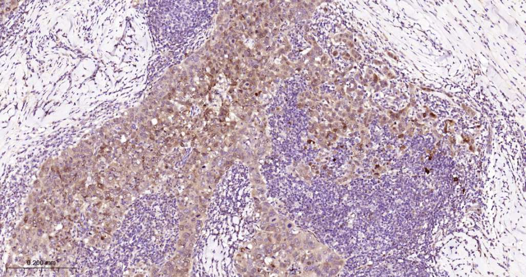 Immunohistochemical analysis of paraffin embedded Human breast cancer tissue slide using IHC0673H (Human eIF4EBP1 Kit).