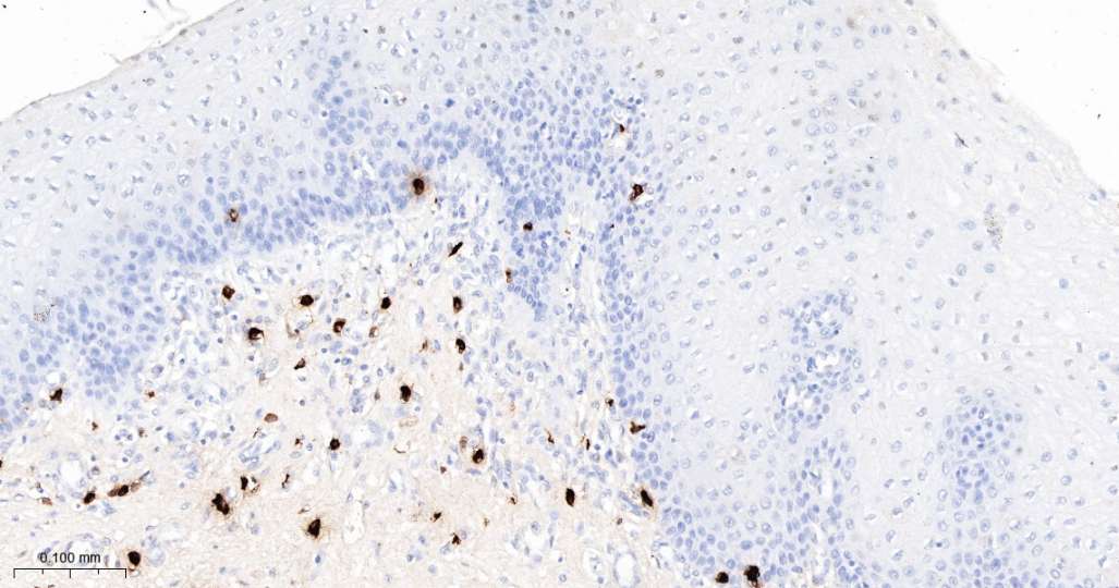 Immunohistochemical analysis of paraffin embedded Human esophagus tissue slide using IHC0682H (Human CMA1 Kit).
