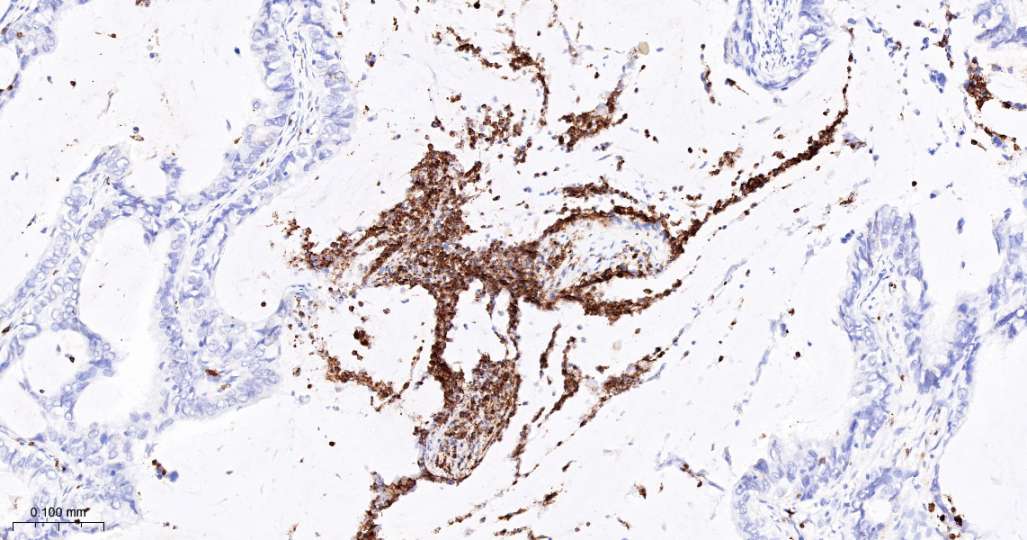 Immunohistochemical analysis of paraffin embedded Human lung cancer tissue slide using IHC0686H (Human FUT4 Kit).